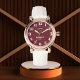 ✅ Deep burgundy red dial with delicate white numerals