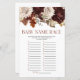 Dies ist ein dunkelbraunes Burgund-Blume Baby Name Race Baby Shower Game. *Baby Name Race - Notieren Sie sich einen Babynamen, der mit jedem Buchstaben beginnt. Die Person mit den meisten Namen, gewinnt!