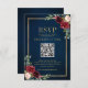 Burgundy Floral Gold Frame Navy Blue QR Code UAWG RSVP Karte