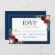 Burgundy Floral Gold Navy Blauer Rustikaler Hochze RSVP Karte