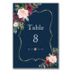 Burgundy Floral Navy Blue Gold Hochzeit Tischnummer