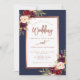 Burgundy Floral Navy Blue Rose Gold Script Wedding Einladung