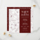 Immerse your guests in the enchanting beauty of your upcoming celebration with the captivating backdrop of wildflowers that grace the design. The delicate and picturesque wildflowers create a whimsical atmosphere, promising an unforgettable wedding experience. With these burgundy save-the-date cards, you not only announce your special day but also offer a glimpse into the unique and enchanting theme that awaits. Capture the essence of your love story with this invitation that seamlessly marries modern aesthetics with the timeless allure of nature.
