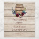Einzigartiges Kartendesign mit Watercolor Burgundy Navy Blue Bouquet, Weinfass mit Herz, prächtigen Schriftart, alles auf einem alten gewaschenen Holz. Verwenden Sie das Tool Anpassen, um Ihre Informationen hinzuzufügen. Für passende Artikel besuchen Sie bitte meine Weinbarrel Floral Wedding Collection.