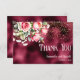 Eine elegante Dankeschön-Karte mit rosa Rosen auf einem Imitat Bordeaux-Folie und goldenen Glitzer Hintergrund.