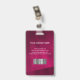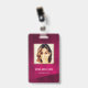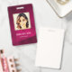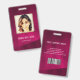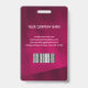 Moderner Foto Business ID Ausweis mit Barcode auf bordeauxrotem Hintergrund. Zusätzliche Informationen können auf der Rückseite dieses Business-ID-Abzeichens hinzugefügt werden