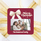 Burgundy Foto Creme Bogen Retro Weihnachten Quadratischer Aufkleber