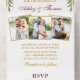 Elegante Burgunder Aquarell 3 Foto Gold All In One Wedding Einladung mit RSVP Card beinhaltet burgundische Rose, rosa Rosen, rote Rosen und botanische Vegetation.