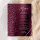 Burgundy Glam Glitzer Script Wedding Menükarte