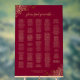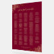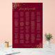 Dieses hübsche Sitzdiagramm zeichnet sich durch ein elegantes Design aus. Freuen Sie sich auf zarte goldene Gardinen und Wirbel in den Ecken auf einem weinroten, bordeauxroten oder maronfarbenen Hintergrund. Der Titel ist in extravaganter Skriptkalligrafie geschrieben und lautet "Bitte finden Sie Ihre Tabelle." Es gibt Platz für bis zu 300 Namen in alphabetischer Reihenfolge mit den Namen des glücklichen Paares und des Hochzeitsdatums am Ende. Auf diese Weise können Sie Ihrem Hochzeitsempfang Stil und Klasse hinzufügen, während Sie Ihren Gästen den Zugang zu den Sitzplätzen erleichtern.