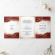 Burgundy Gold Abstrakt Tinte QR Code Wedding Dreifach Gefaltete Einladung