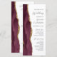Die links Seite dieses eleganten, modernen Hochzeitsprogramms besticht durch einen bordeauxroten Aquarellstreifen, der mit vergoldetem Imitat bestickt ist. Der benutzerdefinierbare Text kombiniert kohlegraues Kalligraphieskript und setzt serifenlose Schriftart auf weißem Hintergrund.
