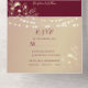 Eine stilvolle Hochzeitsinie mit romantischen Bordeaux- und Rose-Goldtönen, eleganter Blumenspitze und leuchtenden Saitenlichtern. Enthält integrierte UAWG-Postkarte und benutzerdefinierbaren Text. Ein perfekter Treffpunkt für rustikale Hochzeiten im Herbst oder glamouröse Winterfeiern mit einer Touch boho charme. Bitte beachten Sie: Diese Einladung erfordert einen separaten Briefumschlag. Wir empfehlen die Verbindung mit einem A9-Umschlag (5,75" x 8,75") für die beste Passform.