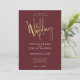 Eine moderne Einladung mit hellen Imitate Goldfolie mit eleganten weißen Schriftart auf bordeauxrotem Hintergrund. Sie können Ihre Daten im Menü "Anpassen" hinzufügen. Diese Einladung ist Teil einer wunderschönen, passenden Hochzeitssuite, die vollständig personalisiert sein kann.