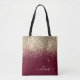 Gold und Burgund Imitate Sparkle und Glitzer Elegante Monogram Buchbeutel. Diese Büchertasche kann auf Ihren Vor- und Vornamen angepasst werden und als Geschenk für Weihnachten, Geburtstag, Brautparty oder Hochzeit.