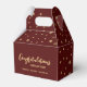 Feiern Sie die Klasse von 2024 mit unserer Burgundy Gold Glückwunsch Grad Gefallen Box. Diese stilvollen Gefälligkeitsboxen sind der perfekte Weg, um Ihren Gästen Ihre Wertschätzung zu zeigen. Das Design verbindet das edle Bordeaux mit elegantem Gold und schafft ein raffiniertes Farbschema, das Feiern und Erfolg verspricht. Der anpassbare Text erlaubt es Ihnen, eine persönliche Touch hinzuzufügen, sei es der Name der Schule, der Stadt, des Staat oder einer anderen Nachricht, die Sie einschließen möchten. Unsere modernen Gefälligkeitsboxen sind so konzipiert, dass sie beeindrucken. Die Farben Burgund und Gold sowie die schlichten, weißen Akzente schaffen eine harmonische und optisch ansprechende Ästhetik, die jedes Party noch verstärken wird. Diese Geschenkdosen sind nicht nur für die Verpackung von Geschenken geeignet, sondern dienen auch als dekorative Elemente, die Ihrer Veranstaltung eine Touch Eleganz verleihen. Personalisierung ist der Schlüssel, um Ihre Veranstaltung einzigartig zu machen. Mit unseren individuell anpassbaren Optionen können Sie die Gutscheinboxen an Ihre Bedürfnisse anpassen. Fügen Sie den Namen der Schule, die Stadt und den Staat hinzu, um ein personalisiertes Erinnerungsstück zu schaffen, das Ihren Gästen einen bleibenden Eindruck hinterlassen wird. Diese Gefälligkeitsboxen werden mit hochwertigen Materialien gefertigt, um Haltbarkeit und ein erstklassiges Gefühl zu gewährleisten. Sie sind leicht zu montieren und halten Ihre Geschenke oder Leckereien sicher und machen sie zu einer exzellenten Wahl für jede Feier. Feiern Sie die Errungenschaften der Klasse von 2024 stilvoll mit unseren Burgundy Gold Glückwunsch Grad Favoriten Box. Passen Sie diese an Ihre Veranstaltung an und schaffen Sie Ihren Gästen ein unvergessliches Erlebnis.
