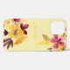 Ein frisches und helles mit Monogramm iPhone 12 Gehäuse mit Aquarellfarben-Blume in Herbstfarben bordeauxrot und Zitronengelb.