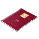 Ein bordeauxroter Hintergrund, goldener Text. Personalisieren und fügen Sie Ihr Logo, Monogramm Initialen, Namen und Titel. Ihr Logo sowohl vorne als auch hinten. Platz für Ihre Website-Adresse auf der Rückseite.