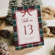 Guide your guests effortlessly to their seats with this Burgundy & Green Plaid Wedding Table Number Card — a classic holiday tartan design featuring a hand-painted ribbon accent, warm winter tones, and clean, elegant typography that complements any festive ceremony or reception.