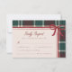Burgundy Green Plaid Christmas Bow Wedding RSVP Karte
