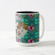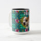 Burgundy heart with flowers and golden rays zweifarbige tasse