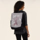 Dieser kühne Face Rucksack mit einer austauschbaren Vorderseite hat eine Abbildung in bordeauxrot des Eiffelturms in Frankreich, umgeben von weißen, dunklen Blume auf einem grauen Hintergrund mit dem Text Oh Paris.
