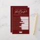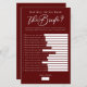 Ein elegantes Brautparty-Spiel in Bordeaux: How Do You Know the Bride für ein Abend-Party. Bestellen Sie diese trendigen Papierblätter für einen lustigen Braut-Trivialfreunde. Ein lustiges Junggeselinnen-Abschied-Spiel mit einem minimalistisch soliden Farbschema.