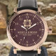 Create your own custom brand luxury watch with Burgundy luxury elegant couple Monogram Watch. Timeless elegant watch dial design with fine indexes. Add your own custom monogram, custom name, designer name, initials, year of birth, logo, icon, photo image, etc. Sophisticated presence of modern minimalist style with elegant script typography template. Luxurious watch for him. Make it a cool new gift for boyfriend, boyfriend, dad, father, husband, brother, son, boyfriend, grandpa, grandpa, grandfather, stepdad, uncle, coworker, employee, company boss, business partner, colleague, best friend, teacher, coach or retiree. Unique monogrammed gift ideas for men's birthday, graduation, anniversary, retirement, vacation, wedding party, appreciation, employment, work, etc. Large diameter about 44mm. Classic vintage style with 22mm fashion black leather wrist strap. White or custom background color. Perfect for 20th, 30th, 40th, 50th, 60th, 70th, 80th, 90s celebrations. Affordable quartz watches under $100. Nice for casual daily wear and special occasions. Also available for other models with brown leather or steel bracelet.