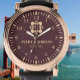 Create your own custom brand luxury watch with Burgundy luxury elegant couple Monogram Watch. Timeless elegant watch dial design with fine indexes. Add your own custom monogram, custom name, designer name, initials, year of birth, logo, icon, photo image, etc. Sophisticated presence of modern minimalist style with elegant script typography template. Luxurious watch for him. Make it a cool new gift for boyfriend, boyfriend, dad, father, husband, brother, son, boyfriend, grandpa, grandpa, grandfather, stepdad, uncle, coworker, employee, company boss, business partner, colleague, best friend, teacher, coach or retiree. Unique monogrammed gift ideas for men's birthday, graduation, anniversary, retirement, vacation, wedding party, appreciation, employment, work, etc. Large diameter about 44mm. Classic vintage style with 22mm fashion black leather wrist strap. White or custom background color. Perfect for 20th, 30th, 40th, 50th, 60th, 70th, 80th, 90s celebrations. Affordable quartz watches under $100. Nice for casual daily wear and special occasions. Also available for other models with brown leather or steel bracelet.
