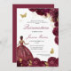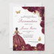 Burgundy Maroon Gold Floral Butterfly Quinceañera Einladung
