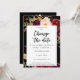Die Dinge ändern sich. Senden Sie diese schöne burgundy marsala floral ändern Sie das Datum Karte, um das Datum und wenn nötig, Adresse und Zeit Ihrer Hochzeit oder Veranstaltung zu ändern. Diese Karte ist bordeauxrot, dunkelbordeauxrot, schwarz, weiß und rosa. Sehen Sie sich unsere Kollektionen "Datum ändern" oder "Burgund Marsala & Blush Floral" an, um die anderen Farben zu sehen.