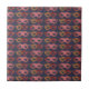 Unique burgundy masks pattern on decorative tile.