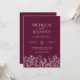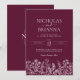 Burgundy Minimalist Wildflower Wedding Monogram Einladung