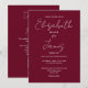 Diese burgundy minimalistisch elegante Skript Hochzeitseinladung kann mit Ihren Informationen in schicken Typografie mit Ihren Hochzeitswebsite-Details und Ihrem QR-Code auf der Rückseite personalisiert werden. Entwickelt von Thisisnotme©