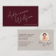 This design strikes the perfect balance between personal and professional. The signature-style name feels authentic and memorable while the clean layout maintains credibility. The rich burgundy color is sophisticated and less common than standard black or navy, helping your card stand out in a stack. The photo inclusion adds personal connection, making you more memorable to potential clients and contacts.