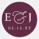 Burgundy Modern Initials Monogram Wedding Runder Aufkleber