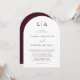 Schöne, elegant und einfach, bordeauxrot minimalistisch Bogen Hochzeitseinladung. Vollständig anpassbar mit Monogramm/Initialen, Namen, Daten, Ort und Farben, um Ihr Hochzeitstil zu gestalten.