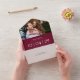 Eine elegante burgundische, minimalistische All-in-One-Hochzeitseinladung mit Ihrem Foto, einem besonderen Datum und einem Set für Hochzeitsdetails in klassischer, schicker Typografie. Die Einladung enthält eine perforierte RSVP-Karte, die für Sie individuell adressiert oder links als leere Karte für die Handschrift der Adressdaten Ihres Gastes verwendet werden kann. Entwickelt von Thisisnotme©