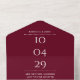 Eine elegante burgundische, minimalistische All-in-One-Hochzeitseinladung mit Ihrem besonderen Datum und Ihre Hochzeitsdetails Set in klassischer, schicke Typografie. Die Einladung enthält eine perforierte RSVP-Karte mit Ihrem Hochzeitswebseiten QR Code und Details. Entwickelt von Thisisnotme©