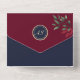 Elegante, rustikale, marineblaue und bordeauxrote Einladung mit Monogramm - Initialen von Braut und Bräutigam, Rose goldfarbene Blume und Sonderbild des Ehepaares. Fügen Sie Ihr Foto, Website und QR-Code hinzu - für UAWG und weitere Informationen.