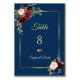 Burgundy Navy Blue Floral Golden Wedding Tischnummer