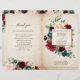 Aquarellbordeauxrot rot rot rot rot rot Rosa rustikales Land klassische Blumen Hochzeitsprogramm Vorlage mit grünem botanischem Blattwerk und eukalyptus Blätter im Holzhintergrund. Dieses schöne, einfach zu anpassende Design kann leicht mit Ihren Hochzeitsfarben, Stilen und Thema übereinstimmen und ist die perfekte Wahl für Herbst- oder Winterhochzeiten. Sie können mehr passende Designs in meinem Shop finden oder kontaktieren Sie mich, wenn Sie Hilfe bei der Anpassung des Designs benötigen.