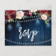 Aquarellbordeauxrot rot rot rot rot rosa rustikale rustikale, schicke Blumenmuster mit Saitenleuchten und Mason Gläser RSVP-Kartenvorlage mit grünem botanischem Blattwerk und eukalyptus-Blätter im Holzhintergrund. Dieses schöne, einfach zu anpassende Design kann leicht an Ihre Hochzeitsfarben, Stile und Thema anpassen und ist die perfekte Wahl für Herbst Mittersommer oder Winter Hochzeiten. Sie können mehr passende Designs in meinem Shop finden oder kontaktieren Sie mich, wenn Sie Hilfe bei der Anpassung des Designs benötigen.