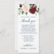 Doppelseitiges Menü und Vielen Dank Karten! Verwenden Sie nur als Menü, indem Sie Elemente von der Rückseite löschen. Oder bearbeiten Sie einfach das Menü und danke Ihnen Platzkarte! Dieses Design besticht durch einen hübschen Script-Schriftart und einen hübschen Bouquet mit bordeauxfarbenen Blumen.