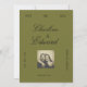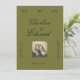 A stylish vintage-inspired save the date card featuring a rich olive green background, classic script typography, and a customizable photo layout. Accented with deep burgundy tones, this elegant design is perfect for couples planning a timeless, romantic, or modern classic wedding. Personalize names, date, location, and photo to announce your special day with charm and sophistication.