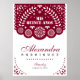 Beginnen Sie Ihre Quinceañera mit dieser traditionellen Papelpicado-Einladung. Das Design wird mit Papierausschnitt aus Blume und anderen Details durchgeführt. Personalisieren Sie mit Ihrem Namen und dem Datum des Party. Erhältlich in Rot, Bordeaux, Königblau, Smaragdgrün und Hot-Rosa. Koordinierung der Einladungen und Party.