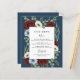 Der Blumenkranz aus Silber und Eukalyptus ist im Design gehalten. Burgunder-rote Rose, staubige blaue und elfenbeinblaue Ekru- oder weiße Anemonen fügen eine elegante Touch hinzu. Der Hintergrund ist marineblau mit einem weißen Textfeld. Dunkelgraue Schriftart werden mit modernem Layout ergänzt.