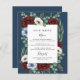 Burgundy Peony Dusty Blue Navy Wedding Menu Cards