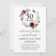 Ein hübscher und eleganter Kranz mit bordeauxroten, rosa und violetten Blumen umgibt 50 Jahre, um diese Party Einladung zum 50. Hochzeitstag zu ergänzen. Der Text ist eine Kombination aus moderner Kalligraphie und klassischem aufrechten Text, um ihm ein zeitgenössisches Ambiente zu verleihen.