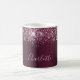 Eine elegante, mädchenhafte und glamouröse Tasse. Tiefer, dunkelmoody, bordeauxfarbener Hintergrund, mit rosa Glitzer Staub verziert. Personalisieren und einen Namen hinzufügen. Der Name ist mit einem modernen handgeschriebenen Stilskript geschrieben. Hellrosa Buchstaben.